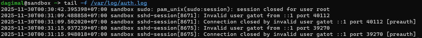 Secara default, SSH dirancang untuk menanggapi semua permintaan koneksi yang masuk. Jika user tidak ditemukan, SSH tetap menjalankan fase autentikasi dengan cara meminta password sebelum akhirnya menolak akses karena user tidak ada. Hal ini bisa menjadi celah kecil yang dapat dieksploitasi dalam skenario brute-force attack, dan dapat menyebabkan connection flood pada network socket.